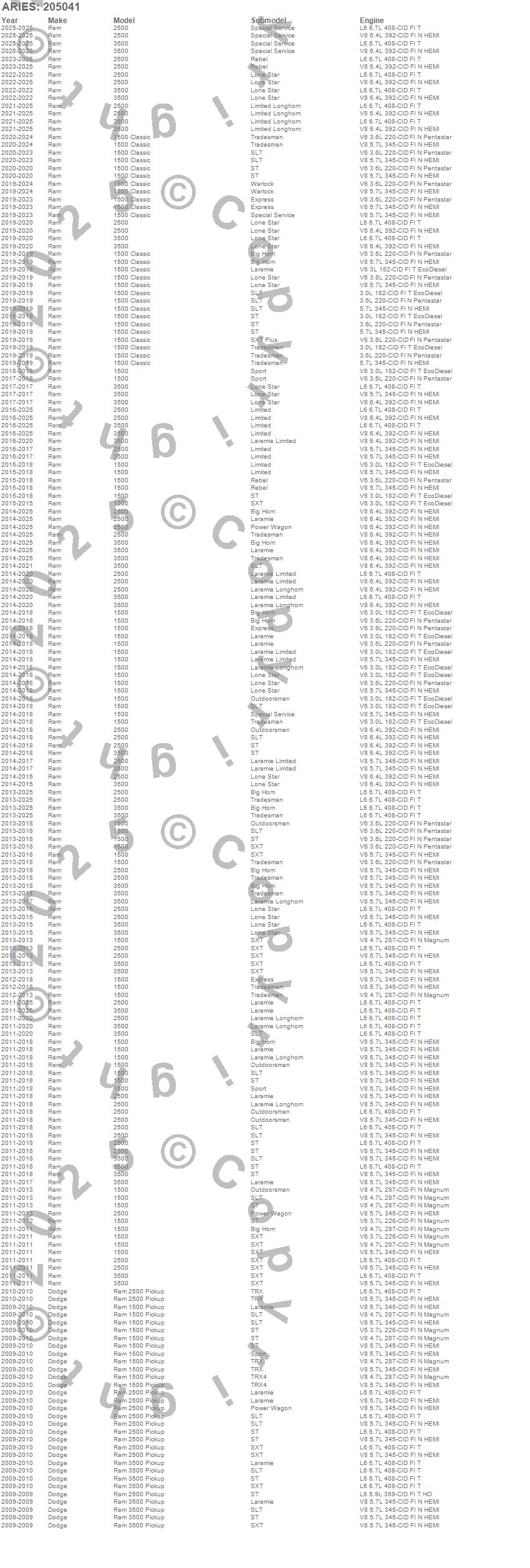 Below is an abbreviated list of applications for the 3 in. Round Side Bars.1500, 1500 Classic, 2500, 3500, Ram 1500, Ram 2500, Ram 3500, Dodge, Ram, 2026, 2025, 2024, 2023, 2022, 2021, 2020, 2019, 2018, 2017, 2016
