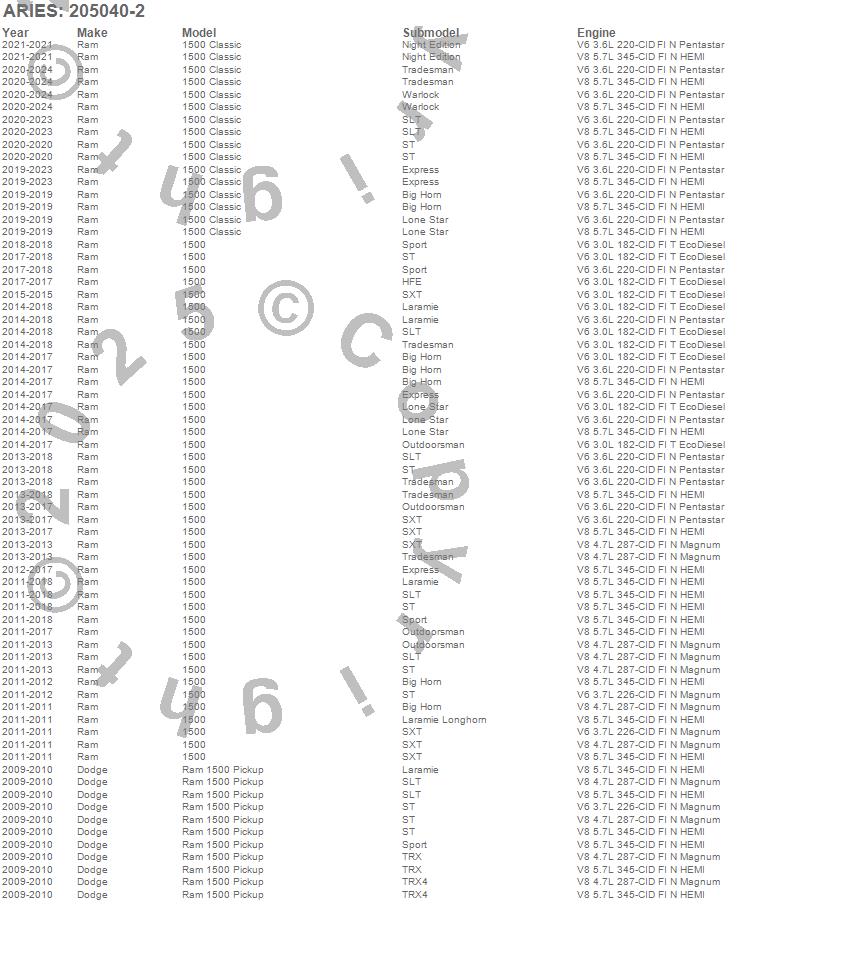 Below is an abbreviated list of applications for the 3 in. Round Side Bars.1500, 1500 Classic, Ram 1500, Dodge, Ram, 2024, 2023, 2022, 2021, 2020, 2019, 2018, 2017, 2016, 2015, 2014, 2013, 2012, 2011, 2010