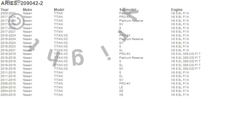 Below is an abbreviated list of applications for the 3 in. Round Side Bars.TITAN, TITAN XD, Nissan, 2024, 2023, 2022, 2021, 2020, 2019, 2018, 2017, 2016, 2015, 2014, 2013, 2012, 2011, 2010, 2009, 2008