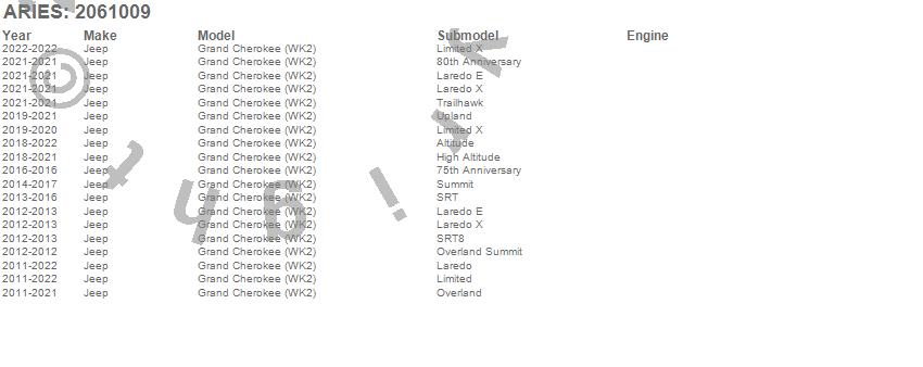 Below is an abbreviated list of applications for the AeroTread Running Boards w/Mounting Brackets.Grand Cherokee (WK2), Jeep, 2022, 2021, 2020, 2019, 2018, 2017, 2016, 2015, 2014, 2013, 2012, 2011