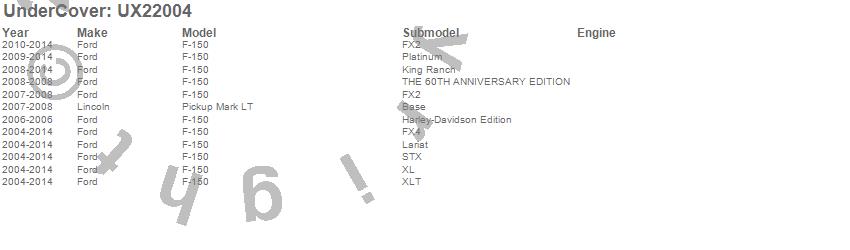Below is an abbreviated list of applications for the Ultra Flex Tonneau Cover.F-150, Mark LT, Ford, Lincoln, 2014, 2013, 2012, 2011, 2010, 2009, 2008, 2007, 2006, 2005, 2004