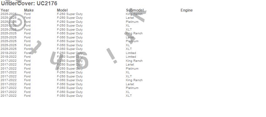 Below is an abbreviated list of applications for the SE Tonneau Cover.F-250 Super Duty, F-350 Super Duty, Ford, 2026, 2025, 2022, 2021, 2020, 2019, 2018, 2017