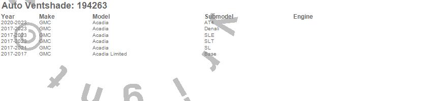 Below is an abbreviated list of applications for the Ventvisor In-Channel Deflector 4 pc..Acadia, Acadia Limited, GMC, 2023, 2022, 2021, 2020, 2019, 2018, 2017