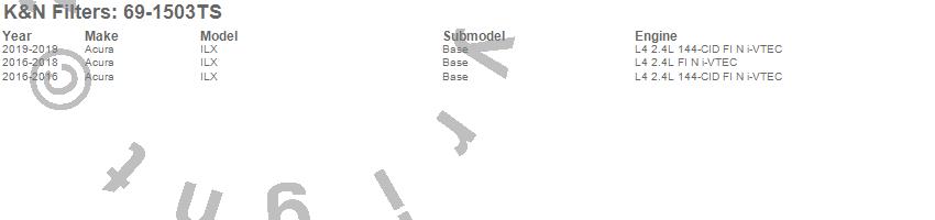 Brand: K&N FiltersPart Number: 69-1503TSAir Intake Kit Type: Incl. Air Filter/Heat Shield/Silver Tubing - Estimated Horsepower Gain 6.37 HP At 6069 RPMUPC: 024844363954