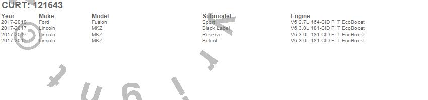 Below is an abbreviated list of applications for the Class II 1.25 in. Receiver Hitch.Fusion, MKZ, Ford, Lincoln, 2019, 2018, 2017