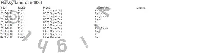 Below is an abbreviated list of applications for the Custom Molded Mud Guard Set.F-250 Super Duty, F-350 Super Duty, Ford, 2016, 2015, 2014, 2013, 2012, 2011