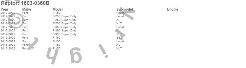 Brand: RaptorPart Number: 1603-0360BNerf/Step Bar Type: Black E-Coated - 5 in. - Rocker Panel MountUPC: 813443021095