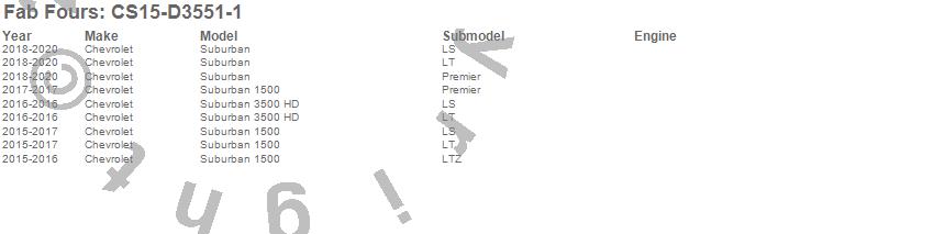 Below is an abbreviated list of applications for the Vengeance Front Bumper.Suburban, Suburban 1500, Suburban 3500 HD, Chevrolet, 2020, 2019, 2018, 2017, 2016, 2015