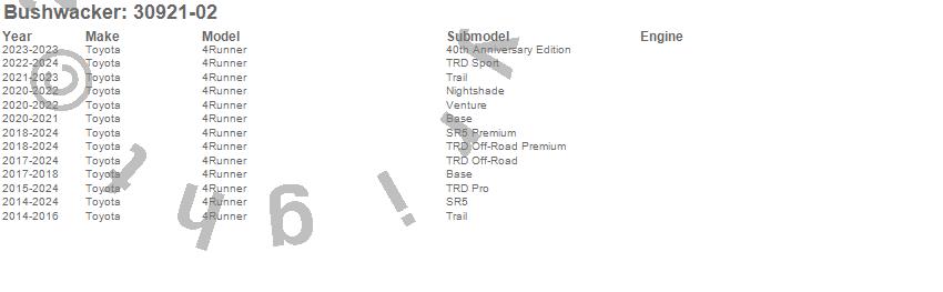 Below is an abbreviated list of applications for the Pocket Style Fender Flares.4Runner, Toyota, 2024, 2023, 2022, 2021, 2020, 2019, 2018, 2017, 2016, 2015, 2014