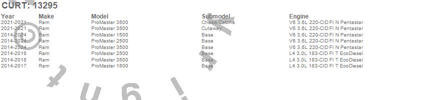 Brand: CURTPart Number: 13295Trailer Hitch Type: Rear - 5000lbs. Gross Trailer Weight - 500lbs. Tongue WeightUPC: 612314039012