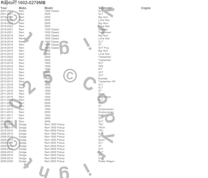 Brand: RaptorPart Number: 1602-0279MBNerf/Step Bar Type: Black E-Coated - 5 in. - Rocker Panel MountUPC: 813443022047