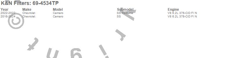 Brand: K&N FiltersPart Number: 69-4534TPAir Intake Kit Type: Incl. Air Filter/Heat Shield/Polished Tubing - 15.16 HP At 4833 RPMUPC: 024844363855