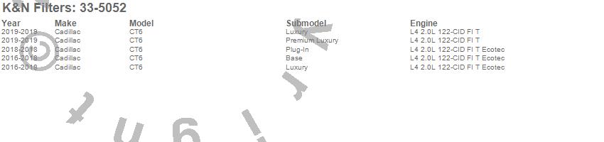 Below is an abbreviated list of applications for the Air Filter.CT6, Cadillac, 2019, 2018, 2017, 2016