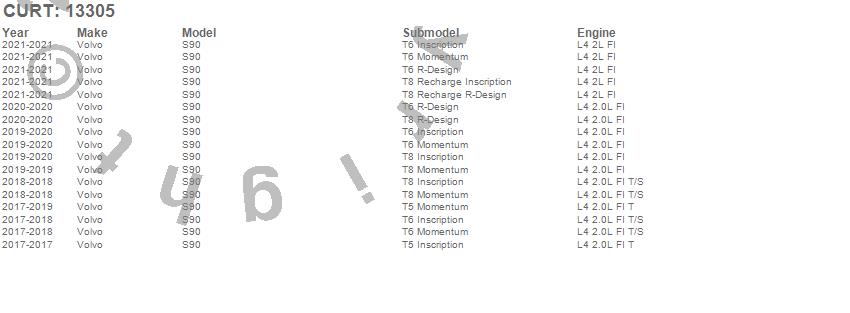 Below is an abbreviated list of applications for the Class III 2 in. Receiver Hitch.S90, Volvo, 2021, 2020, 2019, 2018, 2017