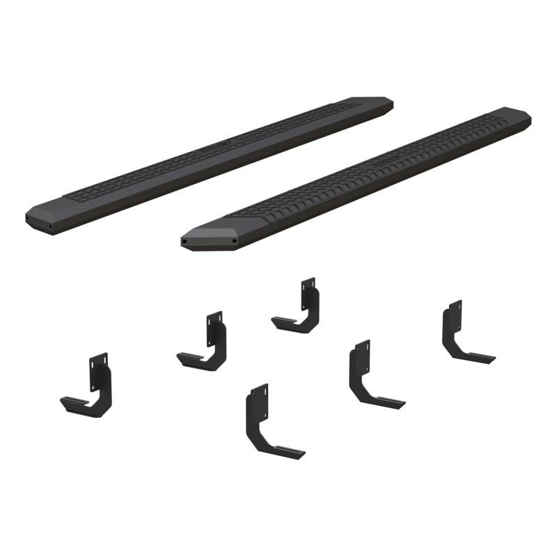 Brand: ARIESPart Number: 2556024Nerf/Step Bar Type: 5.5 in. - Incl. Side Bars PN[2055991] - VersaTrac Brackets PN[2055124] - Carbide Black Powder Coat AluminumUPC: 812410033871