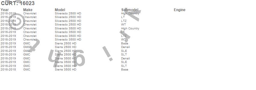 Below is an abbreviated list of applications for the 5th Wheel Roller Adapter.Sierra 2500 HD, Sierra 3500 HD, Silverado 2500 HD, Silverado 3500 HD, Chevrolet, GMC, 2019, 2018, 2017, 2016