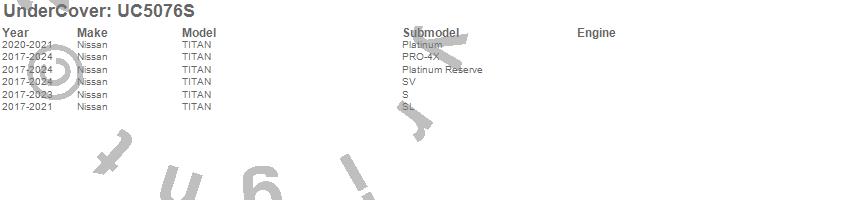 Below is an abbreviated list of applications for the SE Smooth Tonneau Cover.TITAN, Nissan, 2024, 2023, 2022, 2021, 2020, 2019, 2018, 2017