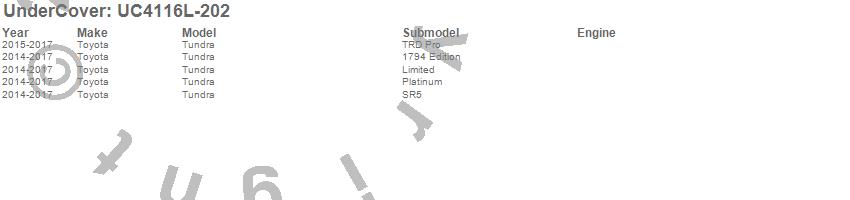 Below is an abbreviated list of applications for the LUX Tonneau Cover.Tundra, Toyota, 2017, 2016, 2015, 2014