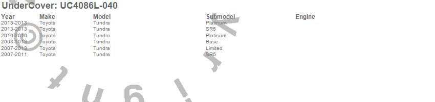 Below is an abbreviated list of applications for the LUX Tonneau Cover.Tundra, Toyota, 2013, 2012, 2011, 2010, 2009, 2008, 2007