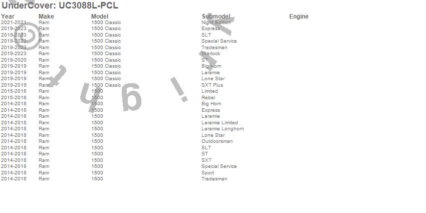 Brand: UnderCoverPart Number: UC3088L-PCLTonneau Cover Type: Blue Streak - Paint Code PCL - Will Not Fit Ram BoxUPC: 816391021582