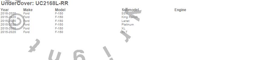 Brand: UnderCoverPart Number: UC2168L-RRTonneau Cover Type: Ruby Red - Paint Code RRUPC: 897197011168