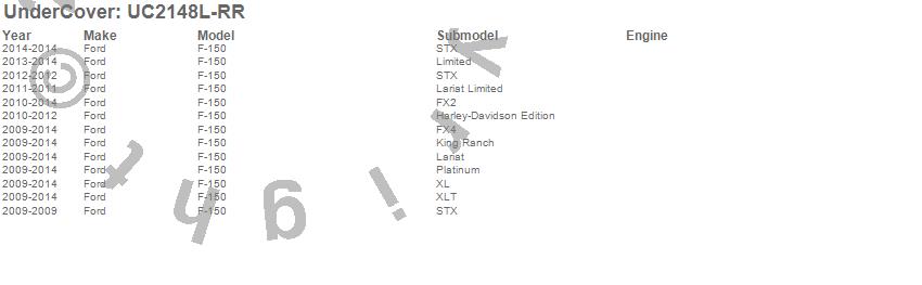 Below is an abbreviated list of applications for the Elite LX Tonneau Cover.F-150, Ford, 2014, 2013, 2012, 2011, 2010, 2009