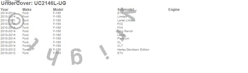 Below is an abbreviated list of applications for the LUX Tonneau Cover.F-150, Ford, 2014, 2013, 2012, 2011, 2010