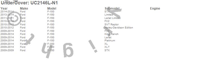 Below is an abbreviated list of applications for the LUX Tonneau Cover.F-150, Ford, 2014, 2013, 2012, 2011, 2010, 2009