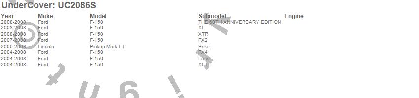 Below is an abbreviated list of applications for the SE Smooth Tonneau Cover.F-150, Mark LT, Ford, Lincoln, 2008, 2007, 2006, 2005, 2004
