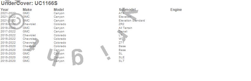 Below is an abbreviated list of applications for the SE Smooth Tonneau Cover.Canyon, Colorado, Chevrolet, GMC, 2022, 2021, 2020, 2019, 2018, 2017, 2016, 2015