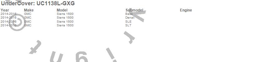 Brand: UnderCoverPart Number: UC1138L-GXGTonneau Cover Type: Iridium Effect - Paint Code GXG/WA121VUPC: 816391020769