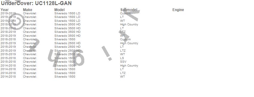 Brand: UnderCoverPart Number: UC1128L-GANTonneau Cover Type: Silver Ice - Paint Code GAN/WA636RUPC: 897197010956