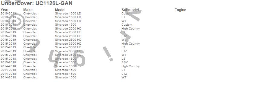 Brand: UnderCoverPart Number: UC1126L-GANTonneau Cover Type: Silver Ice - Paint Code GAN/WA636RUPC: 897197006829