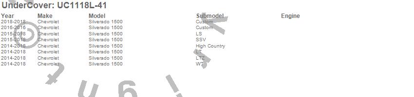 Below is an abbreviated list of applications for the Elite LX Tonneau Cover.Silverado 1500, Chevrolet, 2018, 2017, 2016, 2015, 2014