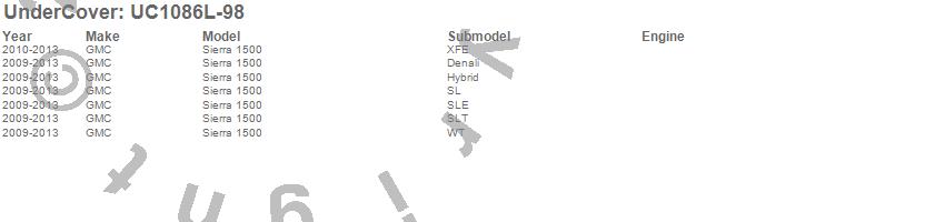 Brand: UnderCoverPart Number: UC1086L-98Tonneau Cover Type: White Diamond - Paint Code GBN/WA800J - w/o Factory Bed Rail CapsUPC: 897197002630