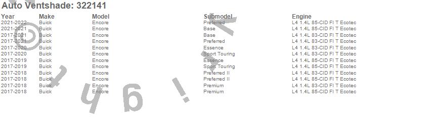 Below is an abbreviated list of applications for the Aeroskin Smoke Hood Protector.Encore, Buick, 2022, 2021, 2020, 2019, 2018, 2017