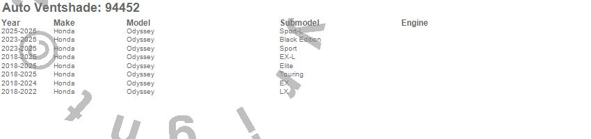 Below is an abbreviated list of applications for the Ventvisor Deflector 4 pc..Odyssey, Honda, 2026, 2025, 2024, 2023, 2022, 2021, 2020, 2019, 2018