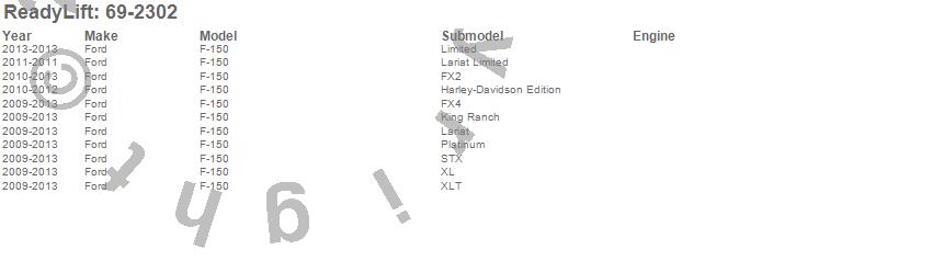 Below is an abbreviated list of applications for the SST Lift Kit.F-150, Ford, 2013, 2012, 2011, 2010, 2009