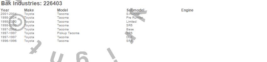 Below is an abbreviated list of applications for the BAKFlip G2 Hard Folding Truck Bed Cover.Tacoma, Toyota, 2004, 2003, 2002, 2001, 2000, 1999, 1998, 1997, 1996
