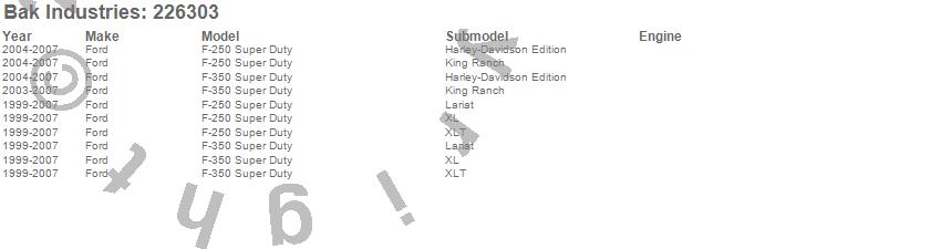 Below is an abbreviated list of applications for the BAKFlip G2 Hard Folding Truck Bed Cover.F-250 Super Duty, F-350 Super Duty, Ford, 2007, 2006, 2005, 2004, 2003, 2002, 2001, 2000, 1999