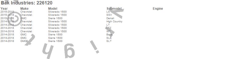 Below is an abbreviated list of applications for the BAKFlip G2 Hard Folding Truck Bed Cover.Sierra 1500, Silverado 1500, Chevrolet, GMC, 2018, 2017, 2016, 2015, 2014