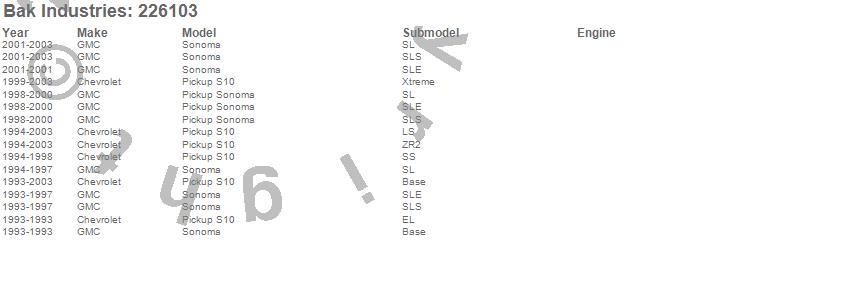 Below is an abbreviated list of applications for the BAKFlip G2 Hard Folding Truck Bed Cover.S10 Pickup, Sonoma, Chevrolet, GMC, 2003, 2002, 2001, 2000, 1999, 1998, 1997, 1996, 1995, 1994, 1993