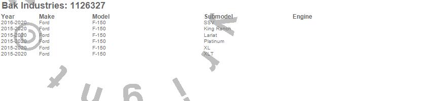 Brand: BAK IndustriesPart Number: 1126327Tonneau Cover Type: Black - Fiberglass Covered Aluminum - Textured Black FinishUPC: 819275039154