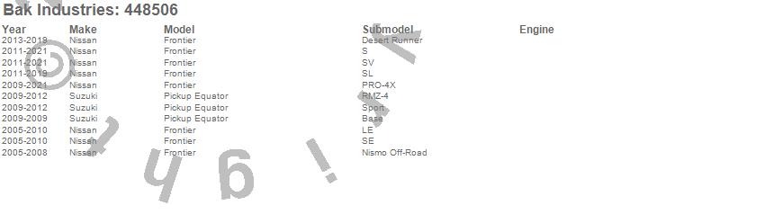 Brand: BAK IndustriesPart Number: 448506Tonneau Cover Type: Black - Aluminum - Matte FinishUPC: 819275042529