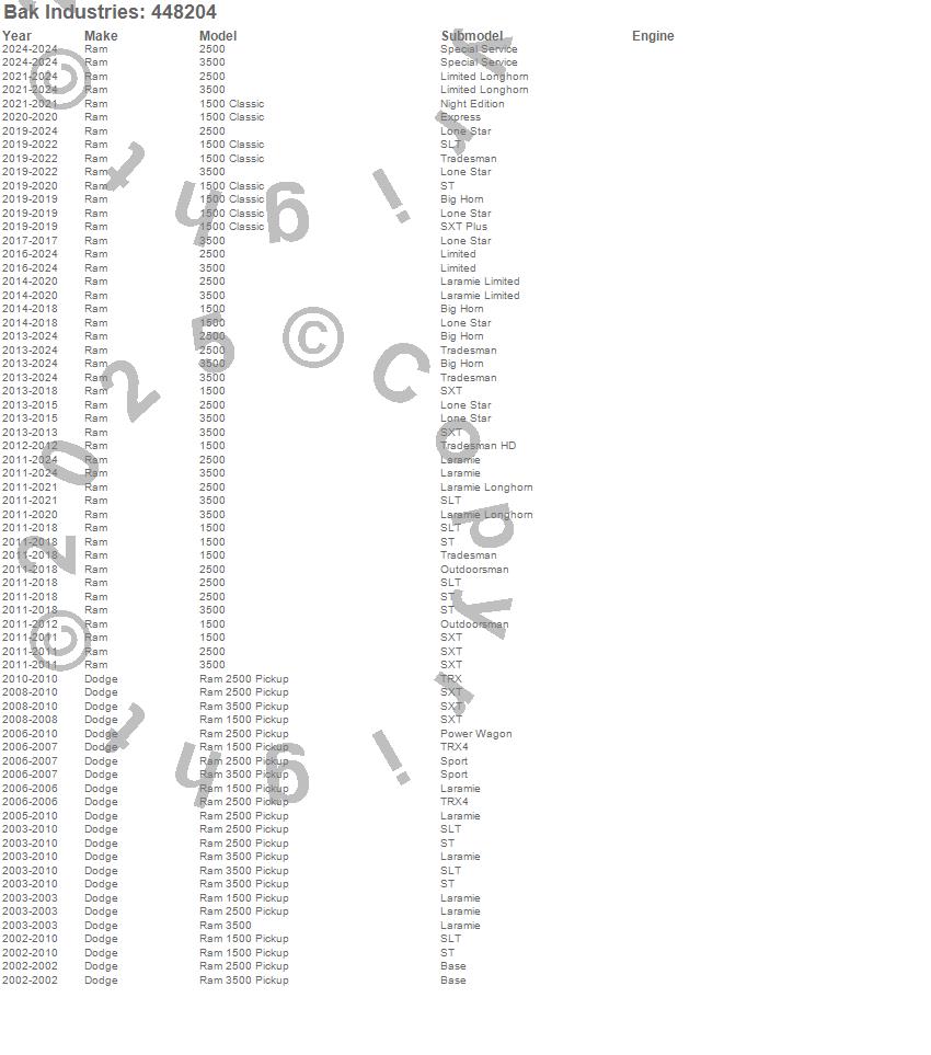 Below is an abbreviated list of applications for the BAKFlip MX4 Hard Folding Truck Bed Cover.1500, 1500 Classic, 2500, 3500, Ram 1500, Ram 2500, Ram 3500, Dodge, Ram, 2024, 2023, 2022, 2021, 2020, 2019, 2018, 2017, 2016, 2015, 2014