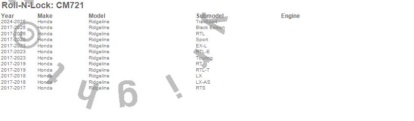Below is an abbreviated list of applications for the Cargo Manager Rolling Truck Bed Divider.Ridgeline, Honda, 2025, 2024, 2023, 2022, 2021, 2020, 2019, 2018, 2017