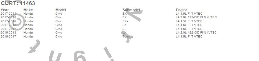 Brand: CURTPart Number: 11463Trailer Hitch Type: Rear - 2000lbs. Gross Trailer Weight - 200lbs. Tongue WeightUPC: 612314114634