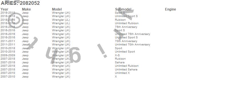 Brand: ARIESPart Number: 2082052Bumper- Front Type: Option 6 - Incl. Center Section PN[2081001] - Corners PN[2081207] - Mounting HardwareUPC: 849055000272