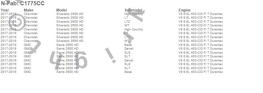 Below is an abbreviated list of applications for the Cab Length Nerf Step Bar.Sierra 2500 HD, Sierra 3500 HD, Silverado 2500 HD, Silverado 3500 HD, Chevrolet, GMC, 2019, 2018, 2017
