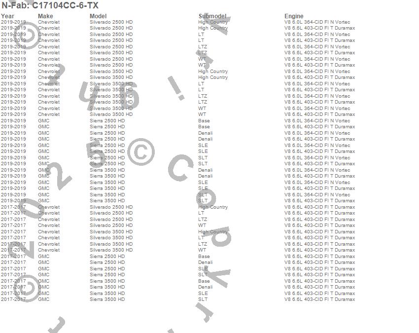Below is an abbreviated list of applications for the Wheel To Wheel Nerf Step Bar w/Bed Access.Sierra 2500 HD, Sierra 3500 HD, Silverado 2500 HD, Silverado 3500 HD, Chevrolet, GMC, 2019, 2017